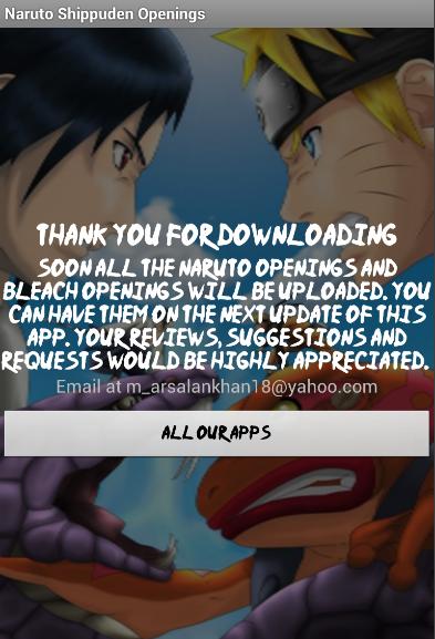 - Hey Everyone, Today i am really excited to say that me and my brother made and Android application on "Naruto Shippuden Openings".